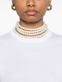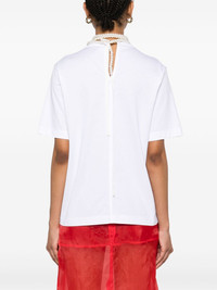 faux-pearl-embellishment T-shirt Highlights - White - V-back - Crew neck - Straight hem Imported Composition Cotton 100% SIZE & FIT Model measurements Height 5 ft 10 in(1.78 m) Bust/Chest 32.67 in(83 cm) Hips 35.43 in(90 cm) Waist 23.22 in(59 cm) FittingInformation Designed for a relaxed fit, this piece allows for comfort and movement when worn Made from a midweight non-stretch fabric, this piece offers minimal elasticity when worn Washing instructions Hand Wash