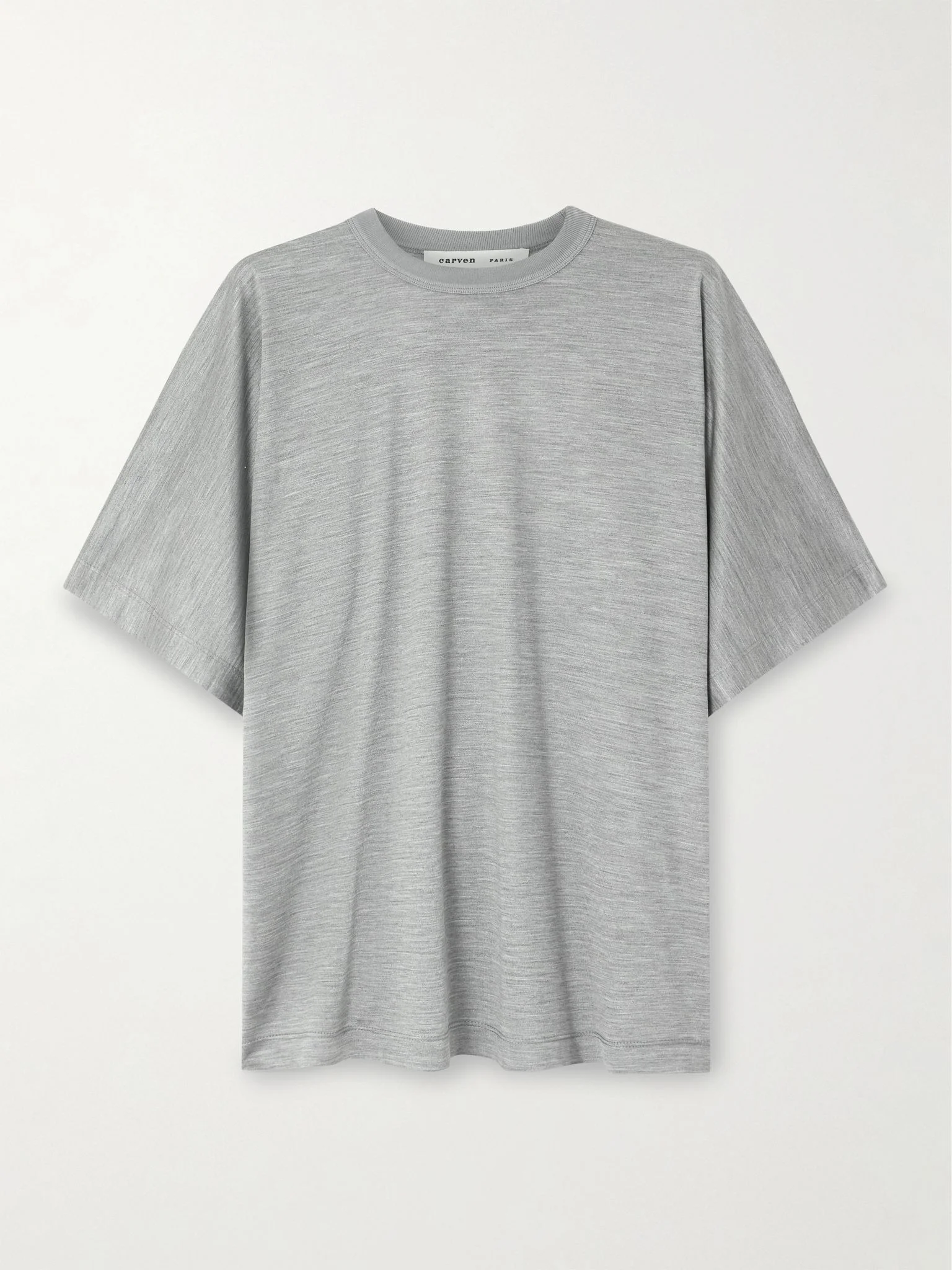 Carven's T-shirt is made from silk-jersey that has a soft, fluid drape. It has a classic crew neckline and oversized sleeves. Wear yours with everything from tailoring to jeans. Size & Fit - Fits true to size, take your normal size - Designed for a relaxed fit - Oversized sleeves - Lightweight, stretchy fabric - Model is 180cm/ 5'11" and is wearing a size Small Model measurements: - Bust: 85cm/ 33.5" - Waist: 62cm/ 24.5" - Hip: 88cm/ 34.5" Details & Care - Gray silk-jersey - Slip on - 100% silk - Dry clean
