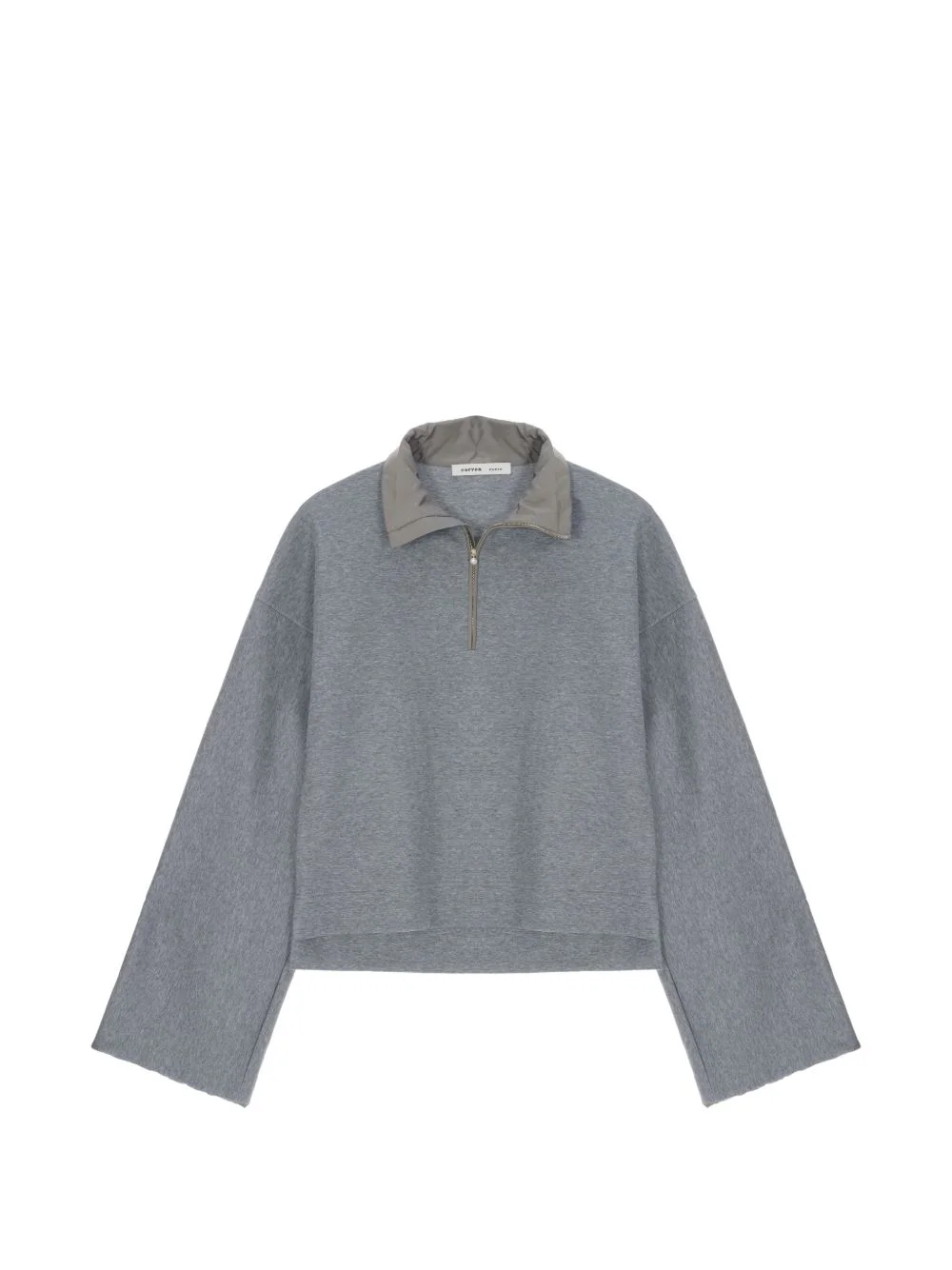 high-neck half-zip sweatshirt Highlights - Heather grey - Half-zip fastening - High neck - Oversized fit Imported Composition Cotton 47%, Cashmere 45%, Polyamide 8% Washing instructions Read Manufacturer Guidelines