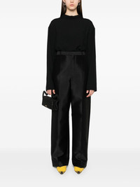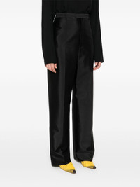 high-waisted trousers Highlights - Black - Hook and zip fly fastening - Belt loops - Two rear welt pockets Imported Composition Outer: Silk 59%, Wool 41% Lining: Cotton 100% SIZE & FIT Model measurements Height 5 ft 10 in(1.78 m) Bust/Chest 33.85 in(86 cm) Hips 36.61 in(93 cm) Waist 26.77 in(68 cm) FittingInformation Designed for a straight-leg fit, these trousers allow for a close fit at the waist and an unrestricted, comfortable fit over the leg Made from a midweight non-stretch fabric Washing instructions Dry Clean Only
