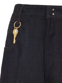 key-charm cotton jeans Highlights - Dark blue - Cotton - Key charm - Belt loops - Pleated front Imported Composition Cotton 100% Washing instructions Read Manufacturer Guidelines