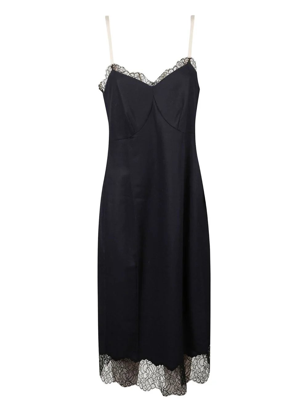 lace-trim midi dress Highlights - Blue - Lace trim - Spaghetti straps - Wool Imported Composition Virgin Wool 100% Washing instructions Read Manufacturer Guidelines