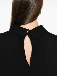 long sleeve blouse Highlights - Black - Rear button fastening - Crew neck - Straight hem Imported Composition Viscose 100% SIZE & FIT Model measurements Height 5 ft 10 in(1.78 m) Bust/Chest 33.85 in(86 cm) Hips 36.61 in(93 cm) Waist 26.77 in(68 cm) FittingInformation Designed to be unstructured, offering a loose fit throughout Made from a midweight non-stretch fabric