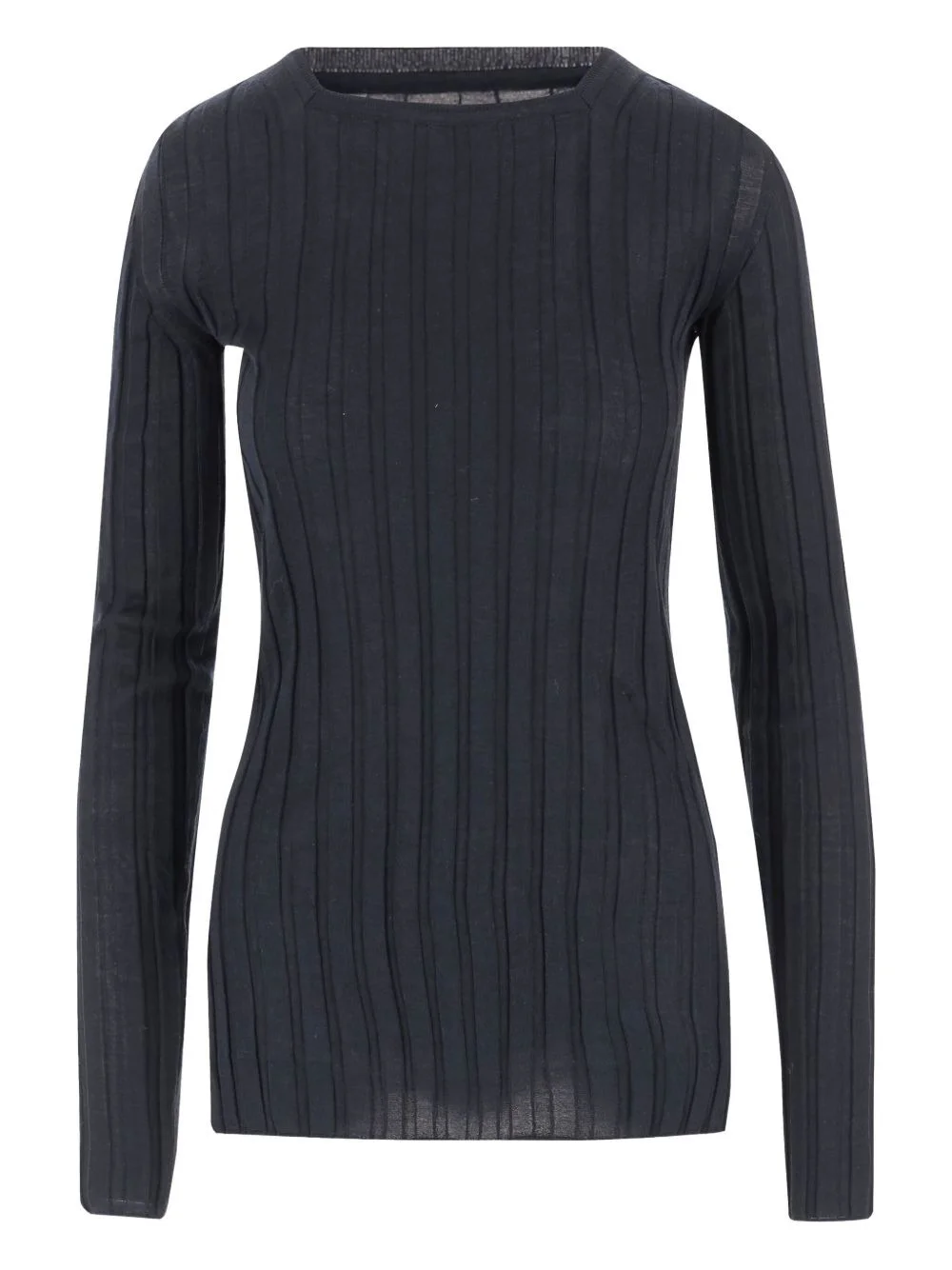 ribbed crew-neck sweater Highlights - Midnight blue - Ribbed texture - Crew neck - Long sleeves - Straight hem Imported Composition Fabric 100% Washing instructions Read Manufacturer Guidelines