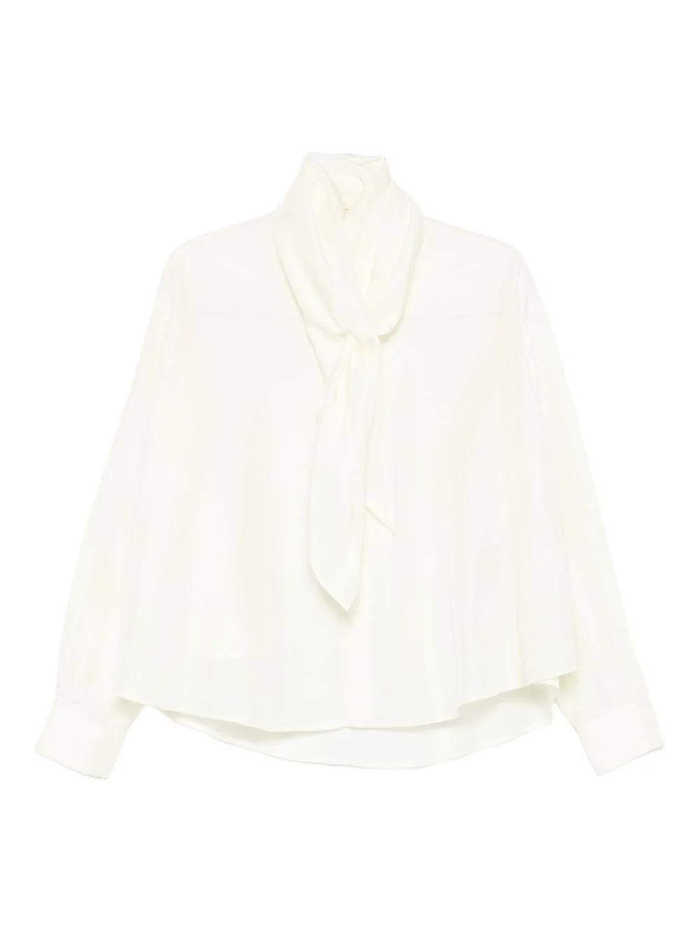 silk blouse Highlights - White - Silk - Tie detail - Long sleeves - Buttoned cuffs Imported Composition Silk 100% SIZE & FIT Model measurements Height 5 ft 8 in(1.73 m) Bust/Chest 29.92 in(76 cm) Hips 33.07 in(84 cm) Waist 23.22 in(59 cm) Washing instructions Read Manufacturer Guidelines