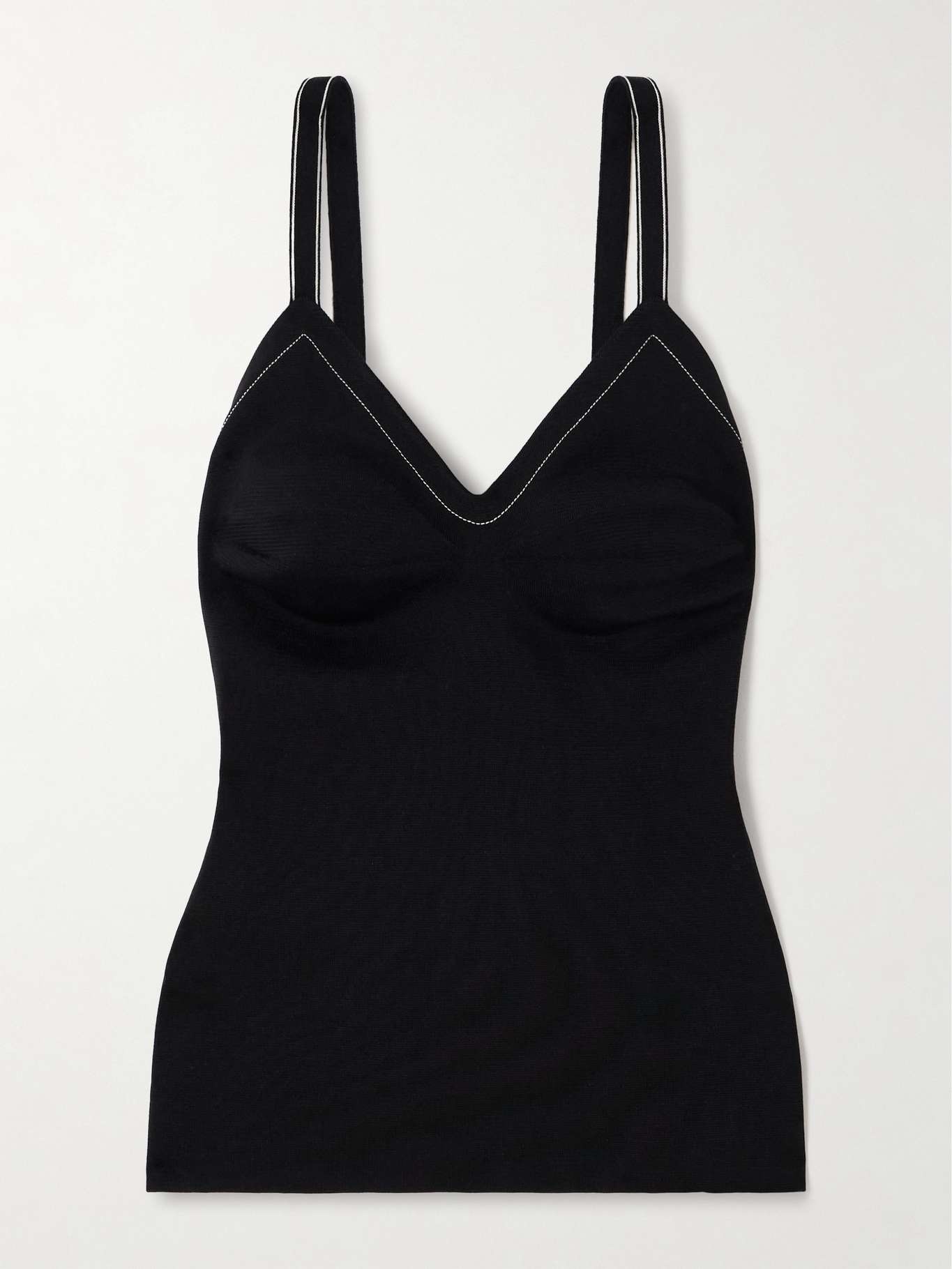 EDITORS'NOTES Carven's camisole is made from black silk that's outlined with contrasting topstitching to highlight the curved neckline and slim straps. It's cut for a slim fit and looks equally chic worn solo or layered beneath a jacket. SIZE & FIT Model measurements: - Fits true to size, take your normal size - Designed for a close fit - Lightweight knit - Model is 177cm/ 5'10" and is wearing a size XSmall - Bust: 80cm/ 31.5" - Waist: 60cm/ 23.5" - Hip: 89cm/ 35" DETAILS & CARE - Black silk - Slip on - 100% silk - Machine wash