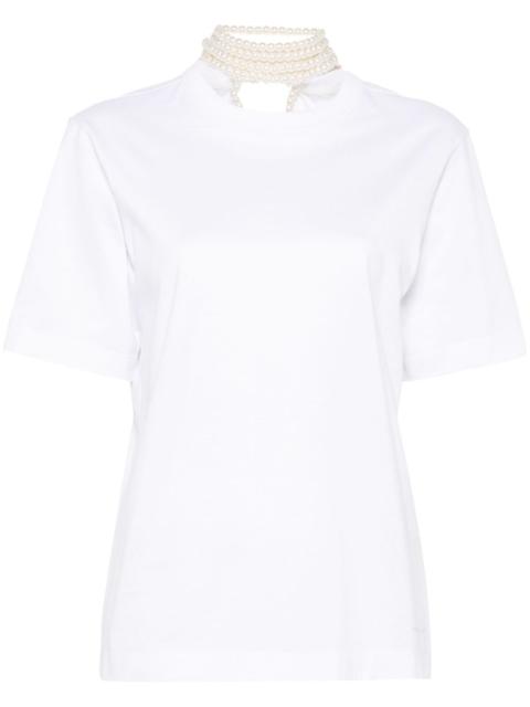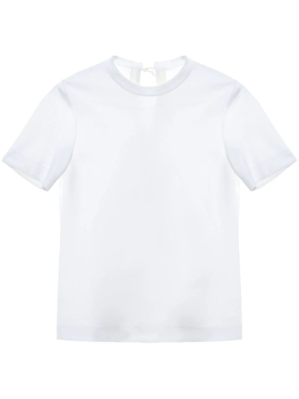 round-neck T-shirt Highlights - White - Rear tie fastening - Short sleeves - Straight hem Imported Composition Acetate 70%, Viscose 30%
