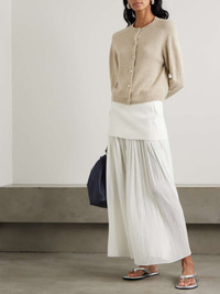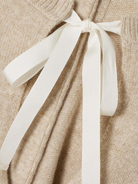 EDITORS'NOTES Carven creates the perfect staples to strengthen your forever wardrobe. Classic with a subtle point of difference, this cardigan is knitted from soft cashmere with a pointelle-trimmed, deep-cut back that fastens with sweet satin ties. SIZE & FIT Model measurements: - Fits true to size, take your normal size - Designed for a relaxed fit - Mid-weight knit - Model is 175cm/ 5'9" and is wearing a size Small - Bust: 81cm/ 32" - Waist: 64cm/ 25" - Hip: 89cm/ 35" DETAILS & CARE - Beige cashmere - Button fastenings through front, tie-fastening keyhole at back - 100% cashmere - Dry clean