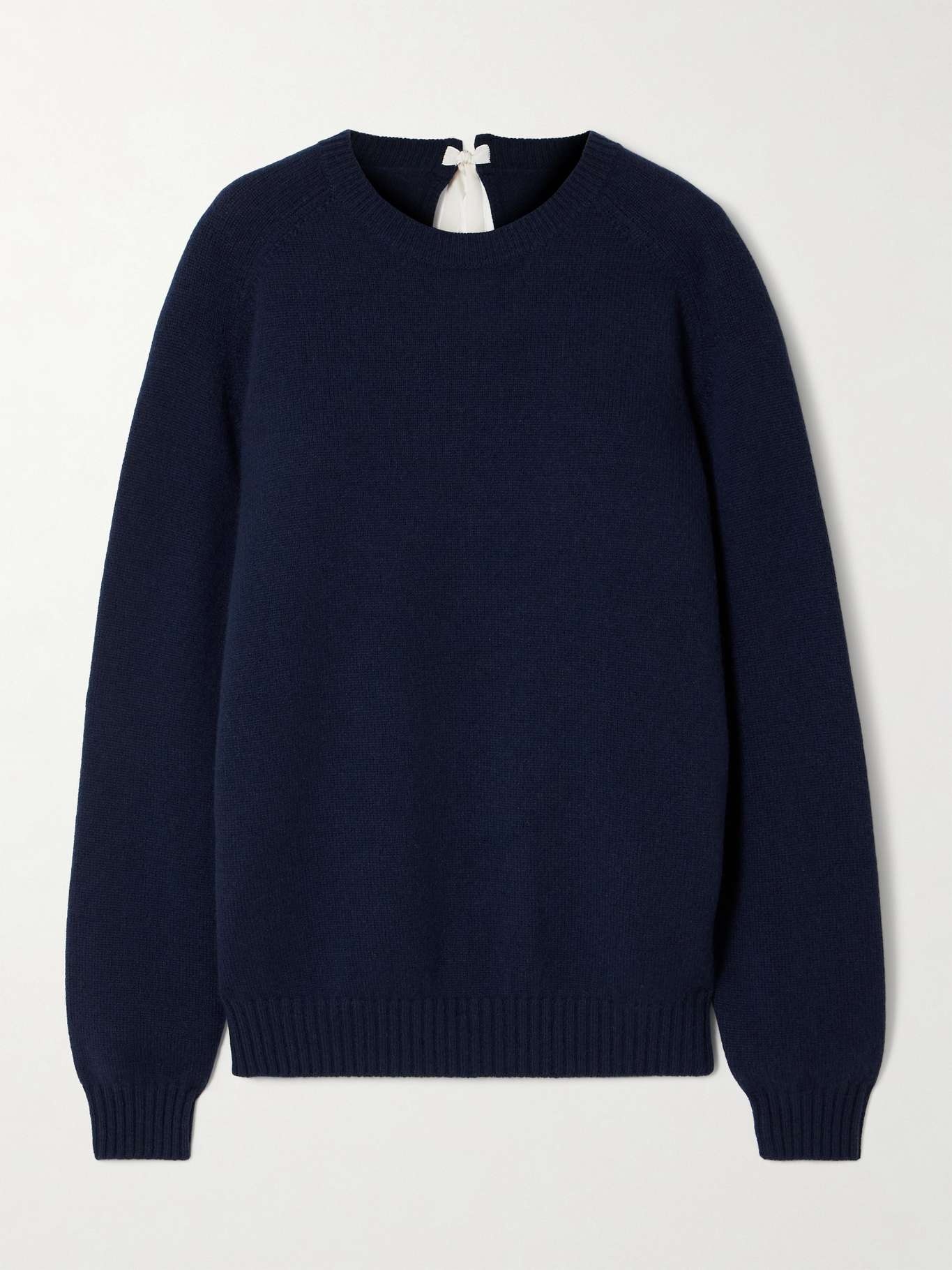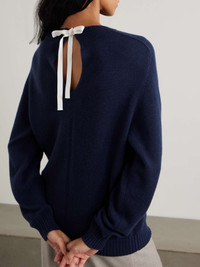 EDITORS'NOTES Carven’s sweater is pretty classic save for the sweet satin bow at the back. It’s finely knit from sumptuous cashmere and has a crewneck profile that’s eternally versatile. SIZE & FIT Model measurements: - Fits true to size, take your normal size - Designed for a relaxed fit - Mid-weight knit - Model is 175cm/ 5'9" and is wearing a size Small - Bust: 81cm/ 32" - Waist: 64cm/ 25" - Hip: 89cm/ 35" DETAILS & CARE - Navy cashmere - Tie-fastening keyhole at back - 100% cashmere - Dry clean - Designer color: Ink