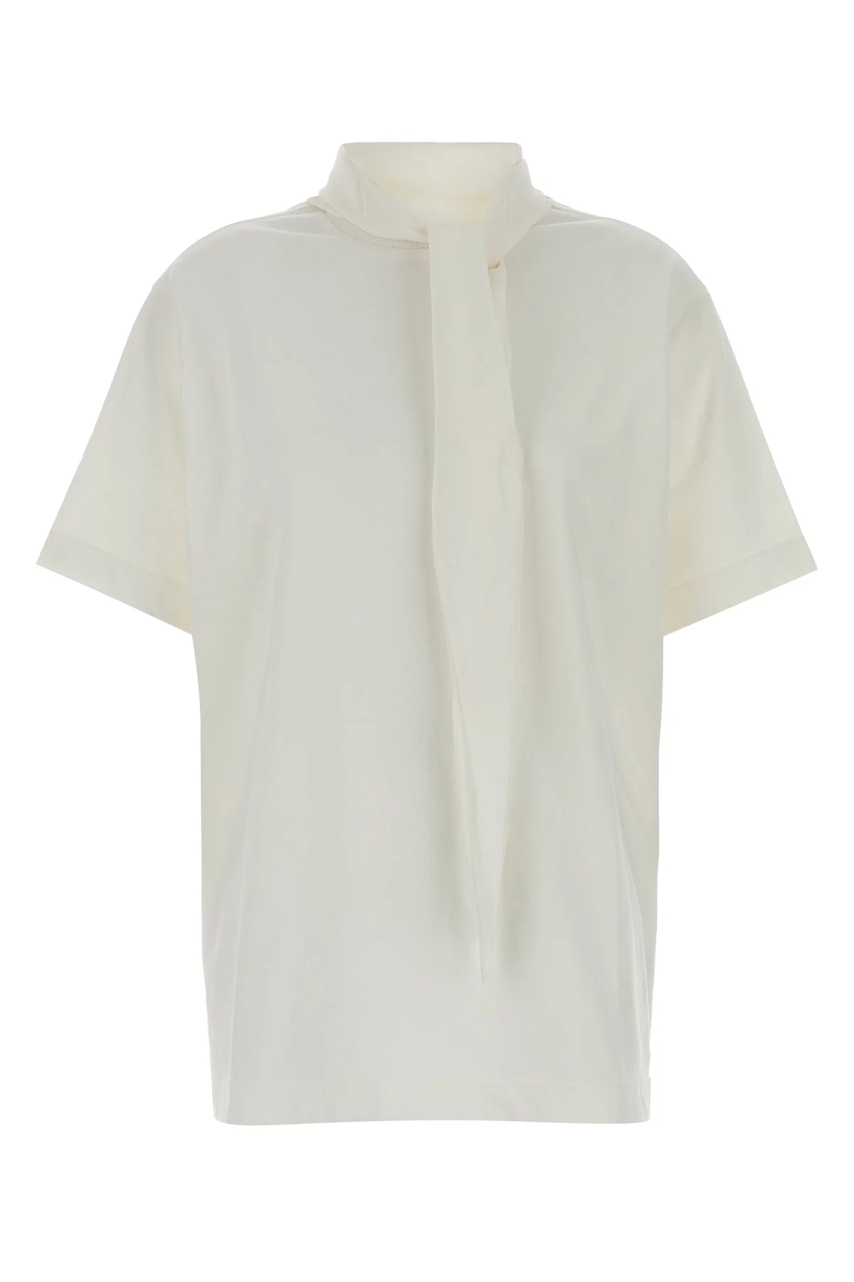 Oversize t-shirt realized in pure cotton. - Silk ribbons to tie at the neck - Ribbed crew-neck DETAILS White cotton oversize t-shirt Exterior: 100% Cotton Made in china Sample size: XS