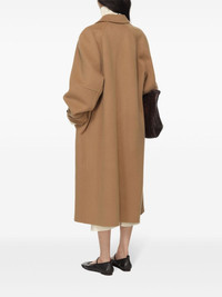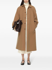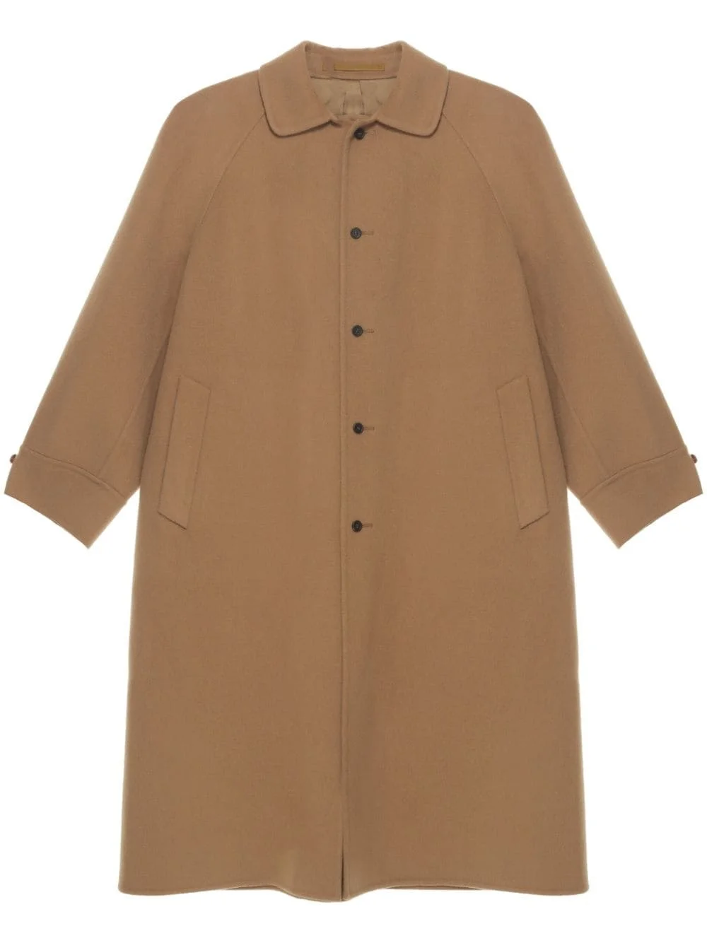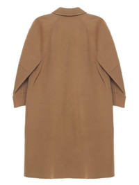 wool coat Highlights - Camel brown - Wool - Brushed finish - Front button fastening - Peter pan collar - Long sleeves - Two rear welt pockets - Straight hem - Knee-length Imported Composition Lining: Viscose 100% Outer: Wool 100%