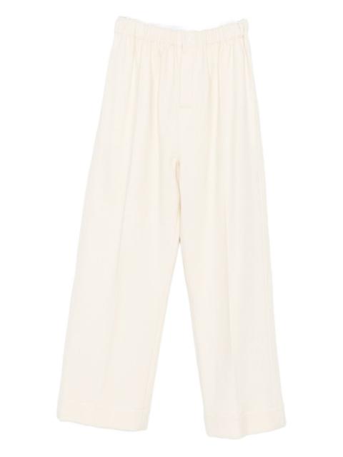 elastic-waist wide-leg trousers Highlights - Midnight - Wool - Elasticated waistband - Button fastening - Wide legs - Straight hemline Imported Composition Wool 100% Washing instructions Read Manufacturer Guidelines