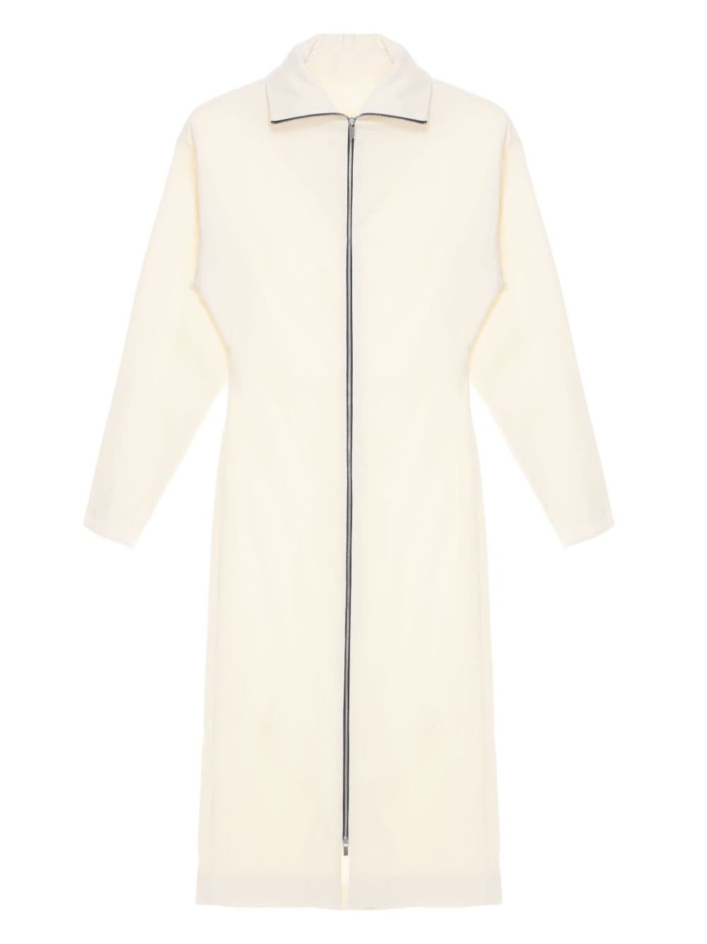 zip-up maxi dress Highlights - Light beige - Wool blend - Front zip fastening - Spread collar - Long sleeves - Buttoned cuffs - Full lining - Straight hem - Long length Imported Composition Virgin Wool 92%, Polyamide 6%, Spandex/Elastane 2%