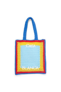 The Arch Crochet bag features the repeat arch print of the season in a daytime colourway of warm yellows, oranges and blues. Made of 100% cotton in a soft textured open weave crochet fabric, the bag has a slouchy silhouette with an embroidered white logo and straps that allow the tote style to be worn over the shoulder or in the hand. Cotton knit fabric 100% cotton Colour: multicolour Specialised dry clean only