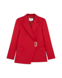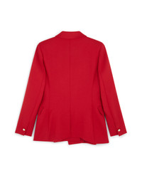 The asymmetric double-breasted jacket is a long sleeve design crafted from a sports tailoring wool blend fabric. Completed with this season's ancient Greece inspired gold-plated C column pin, peak lapels, a back vent, flap pockets, and an asymmetric hem-line. - Wool blend fabric - 94% virgin wool 5% lycra 1% polyamid - Lining: 52% viscose 48% cotton - Colour: red - Specialised dry clean only - Made in Portugal - Fit true to size, take your regular size - - - The model is 177cm/5’10 and is wearing a size S