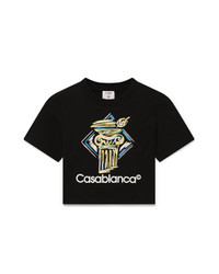 The Diamond Column baby t-shirt is a cropped short-sleeved printed design crafted from cotton blend fabric featuring the house's crayon iconography of a column. Completed with a classic crew neck - designed to fit above the navel. - Cotton loopback jersey fabric - Main: 95% organic cotton 5% elastane - Colour: black - Delicate machine wash - Wash and iron inside out; do not tumble dry - Made in Portugal - Model is 179cm/5'10.5 and is wearing a size S