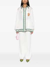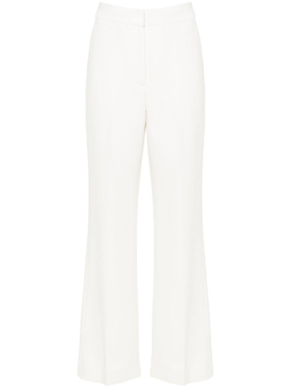 boucle tailored trousers Highlights - Chalk white - Boucle design - Tailored design - Piped-trim detailing - Pressed crease - High-waisted - Concealed front fastening - Wide leg - Two side slit pockets - Two rear jetted pockets - Straight hem Imported Composition Outer: Viscose 71%, Virgin Wool 21%, Polyamide 8% Lining: Viscose 52%, Cotton 48% SIZE & FIT Model measurements Height 5 ft 9 in(1.76 m) Bust/Chest 31.1 in(79 cm) Hips 36.61 in(93 cm) Waist 24.8 in(63 cm) FittingInformation Designed for a straight-leg fit, these trousers allow for a close fit at the waist and an unrestricted, comfortable fit over the leg Made from a midweight non-stretch fabric This piece fits true to size – take your usual size Washing instructions Dry Clean Only