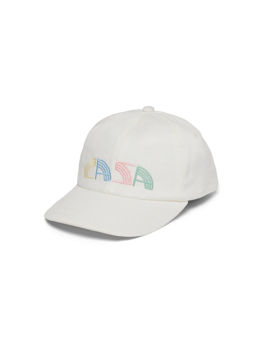 The off-white Casa Deco embroidered cap features the collaboration’s dual branding. Completed with adjustable hook-and-loop gold closure on the back. - 100% organic cotton - Colour: off-white - Specialised dry clean only - Fits true to size, take your regular size - Exclusive to casablancaparis.com & caviarkaspia.com