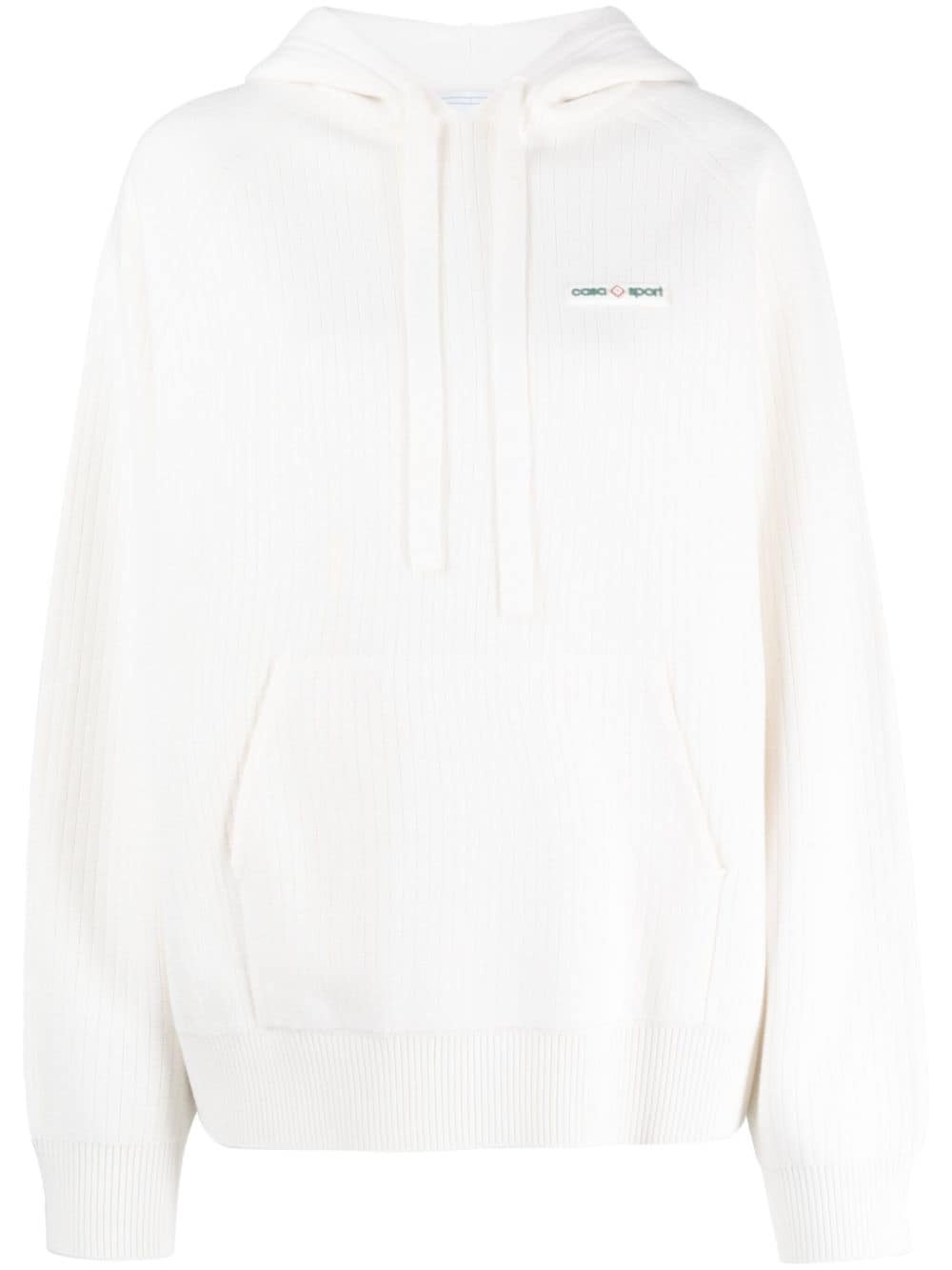 Casa Sport ribbed hoodie Sportswear-inspired Casablanca reveals this wool blend hoodie for the cold season. The brand embodies its signature style with a relaxed silhouette and athletic logo to the front. Highlights - White - Wool blend - Ribbed knit - Applique logo - Drawstring hood - Long sleeves - Front pouch pocket - Straight hem Imported Composition Wool 50%, Acrylic 50% SIZE & FIT Model measurements Height 5 ft 10 in(1.78 m) Bust/Chest 32.67 in(83 cm) Hips 35.43 in(90 cm) Waist 23.22 in(59 cm) FittingInformation Designed to be unstructured, offering a loose fit throughout Made with a midweight knit, this piece offers some stretch This piece fits true to size – take your usual size