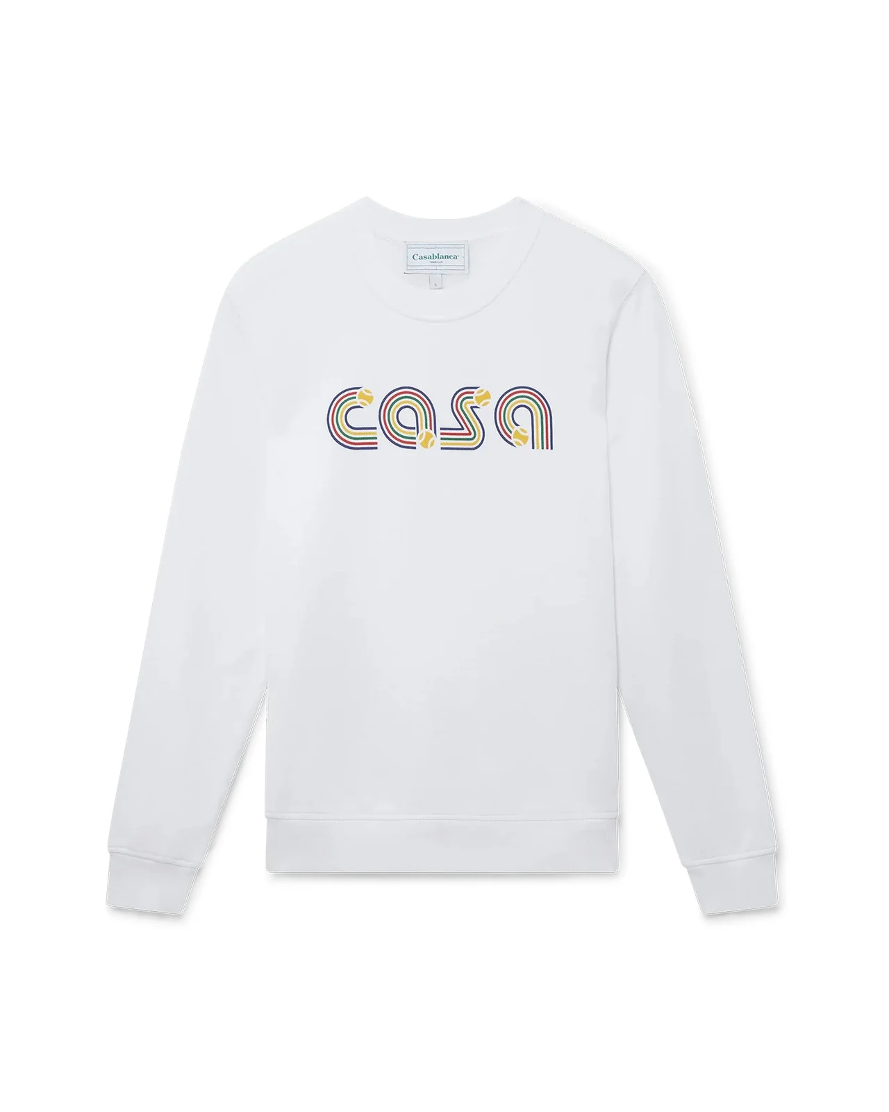 Women's Casa screen-printed organic cotton sweatshirt features the house's signature artwork reinterpreted for the exclusive Nordstrom capsule centred around modern tennis-inspired athleisure. Completed with a classic crewneck, long sleeves and Casablanca Paris branded label, designed for a relaxed fit. - 100% organic cotton - Colour: white - Delicate machine wash - Made in Portugal - Fits true to size, take your regular size - The model is 177cm/5’10 and is wearing a size S. - Exclusive to casablancaparis.com & nordstrom.com