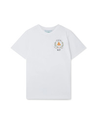 The Casa Way t-shirt features a print of the house's classic iconographic artwork featuring the orange pyramid, tennis rackets and floral design repeated in a larger print on the back. Crafted from 100% organic cotton and completed with a classic crewneck and Casablanca branded label. - 100% organic cotton - Colour: white - Delicate machine wash - Made in Portugal - Fits true to size, take your regular size