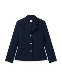 The jacquard knit single-breasted jacket is a classic tailored jacket crafted from a jacquard knit fabric featuring the house's signature diamond monogram. This jacket is completed with button closure, signature gold rim pearl buttons, front pockets, ribbed waist details, . - Jacquard knit fabric - Main: 65% polyester 18% polyamide 17% cotton - Lining: 52% viscose 48% cotton - Colour: navy - Specialised dry clean only - Made in Lithuania - Fits true to size, take your regular size - The model is 179cm/5'10.5 and is wearing a size S