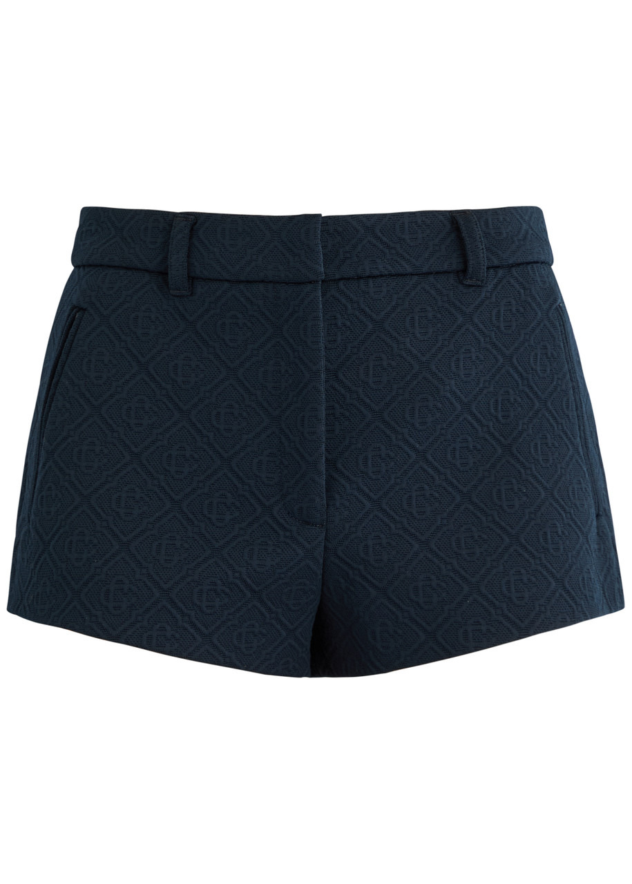 The jacquard knit mini shorts are crafted from a jacquard knit fabric featuring the house's signature diamond monogram. Completed with belt loops, vertical welt pockets, a welt back pocket, and front zip closure. - Jacquard knit fabric - Main: 65% polyester 18% polyamide 17% cotton - Lining: 52% viscose 48% cotton - Colour: navy - Specialised dry clean only - Made in Lithuania - Fits true to size, take your regular size - The model is 179cm/5'10.5 and is wearing a size S