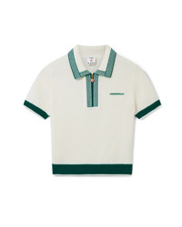 The knit tennis polo shirt is a classic design crafted from a merino wool fabric. Completed with contrast ribbed edge detail on the cuffs, hem, collar and placket, front zip closure, a rib collar and Casablanca logo. - Knitted wool fabric - Main: 100% merino wool - Embroidery: 100% polyester - Colour: white/green - Specialised dry clean only - Fits true to size, take your regular size - The model is 179cm/5'10.5 and is wearing a size S