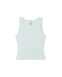 The ribbed jersey tank top is a sleeveless fitted short-style, crafted from ribbed jersey fabric. Completed with a silicon interlocking CC logo patch, a scoop neck, and white contrast wave pattern detail edges around the neck and armholes. - Ribbed jersey fabric - 98% cotton 2% elastane - Applique: 100% polyvinyl carbonate - Colour: mint - Delicate machine wash - Made in Portugal - The model is 177cm/5'9.5 and is wearing a size S