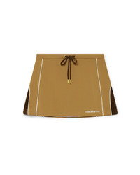 The Chenille panelled mini skirt is a sportswear-inspired design crafted from velour technical fabric and features the house's Casablanca logo. Completed with an elasticated waistband, gold-tipped drawstring fastening, and side panels with white piping details. - Velour technical fabric - Main: 85% polyester 15% elastane - Lining: 100% polyester - Colour: beige brown - The model is 177cm/5'9.5 and is wearing a size S