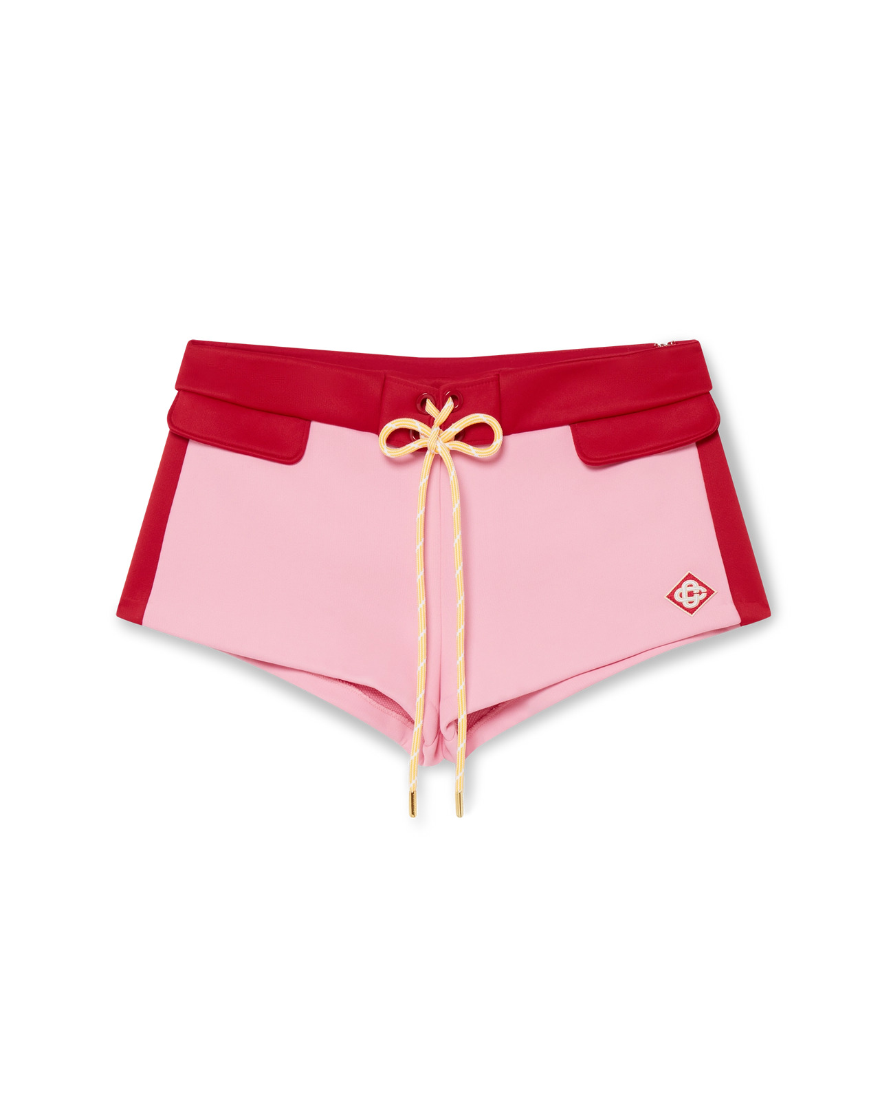 The Tricot mini shorts are a short style crafted from tricot fabric. Completed with a waistband, drawstring fastening, faux flap pockets, and features the house's signature diamond logo. - Italian Loopback Tricot fabric - 100% polyamide - Applique: 95% viscose 5% polyester - Colour: red/pink - Delicate machine wash - Made in Portugal - Fits true to size, take your regular size - The model is 180cm/5'11 and is wearing a size S