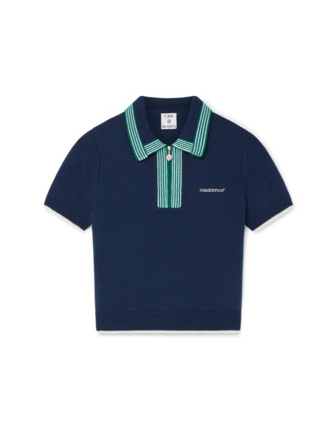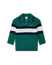 The colour block polo shirt is a cropped long-sleeve design crafted from merino wool fabric and features a blue and white stripe across the chest and back. Completed with raglan sleeves, ribbed cuffs, hem and collar, signature gold-rim pearl buttons and Casablanca logo. - Merino wool fabric - 100% merino wool - Colour: green/navy - Specialised dry clean only - Fits true to size, take your regular size - The model is 179cm/5'10.5 and is wearing a size S