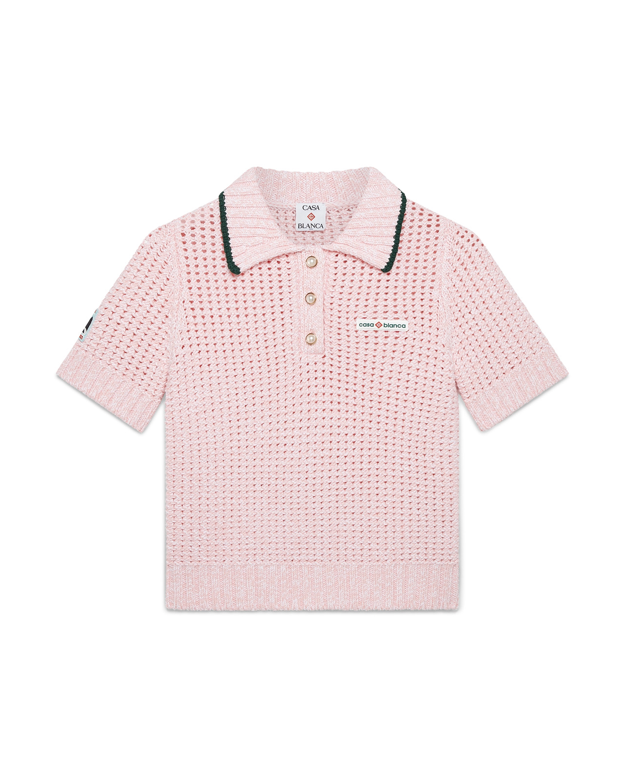 The cotton mouline polo shirt is a classic design crafted from mouline cotton fabric. Completed with button closure, signature gold rim pearl buttons, a rib collar, cuffs, hem, and placket. - Mouline cotton fabric - Main: 95% cotton 5% elastane - Contrast: 100% polyester - Colour: pink - Specialised dry clean only - Made in China - Slim fit - The model is 177cm/5'9.5 and is wearing a size S