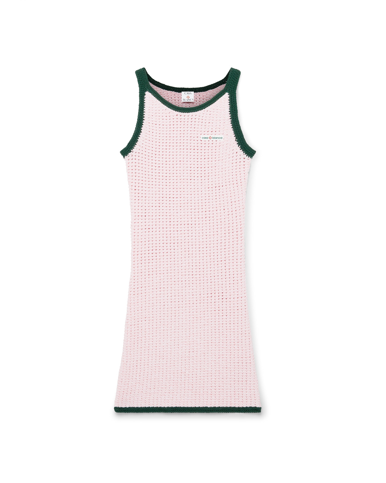 The cotton mouline tank dress is a sleeveless, fitted mini-dress design crafted from mouline cotton fabric featuring the Casablanca logo. Completed with spaghetti straps, contrast hem, collar and armhole detail. - Cotton mouline fabric - 95% cotton 5% elastane - Colour: pink - Specialised dry clean only - Made in China - Slim fit - The model is 177cm/5'9.5 and is wearing a size S