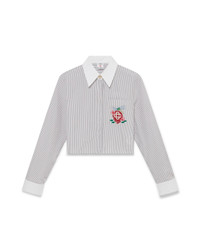 The stripe cropped long-sleeve shirt is a short style crafted from a cotton barre fabric. Completed with button closure, interlocking CC logo corozo buttons, signature gold rim pearl buttons at the collar and cuffs, a breast pocket featuring the season's dragonfly floral artwork, and contrast white point collar and cuffs. - Stripe shirting fabric - 100% cotton - Colour: silver/white - Delicate machine wash - Made in Italy - Relaxed fit - The model is 179cm/5'10 and is wearing a size S