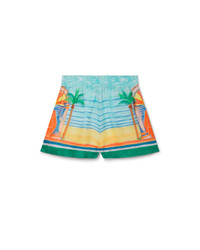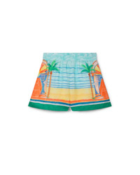 The Day of Victory linen shorts are an all-over printed short style crafted featuring the house's seasonal artwork incorporating surrealist tennis with geometric curvature loosely inspired by the work of Nigerian painter Uzo Egonu. Crafted from a printed silk satin fabric, complete with an elasticated waistband with drawstring fastening, side pockets, and hem detail. Printed linen woven fabric 100% linen Day Of Victory print multicolour Specialised dry clean only Made in Italy Fits true to size, take your regular size