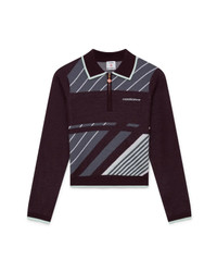 The diagonal tennis merino long-sleeve polo shirt is a knitted design featuring diagonal sport stripes and an embroidered Casablanca logo. Completed with a quarter zip closure with signature diamond logo zipper tab, a rib collar, and contrast edge detail on the collar and cuffs. - Merino wool fabric - 100% merino wool - Colour: aubergine/ stripe - Specialised dry clean only - Made in China - Slim fit - The model is 179cm/5'9.5 and is wearing a size S