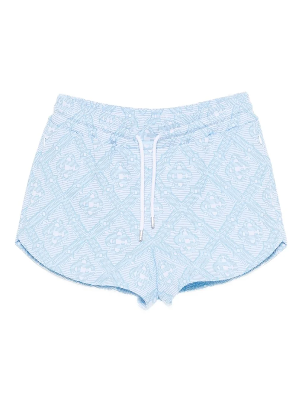 drawstring pattern shorts Highlights - Light blue - Geometric pattern - Drawstring fastening - Elasticated waistband - Curved hem Imported Composition Cotton 58%, Polyester 40%, Polyamide 2% SIZE & FIT Model measurements Height 5 ft 9 in(1.75 m) Bust/Chest 32.28 in(82 cm) Hips 35.03 in(89 cm) Waist 23.62 in(60 cm) Washing instructions Machine Wash