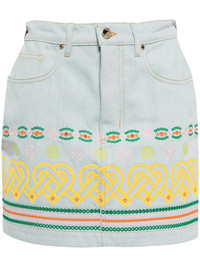 embroidered cotton mini skirt Highlights - Light blue/multicolour - Cotton - Embroidered motif - Belt loops - Classic five pockets - Logo patch to the rear - Straight hem - Front button and zip fastening Imported Composition Body: Cotton 100% SIZE & FIT Measurement HIPS 37.79 in(96 cm) LENGTH 15.35 in(39 cm) WAIST 29.13 in(74 cm)