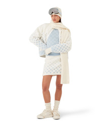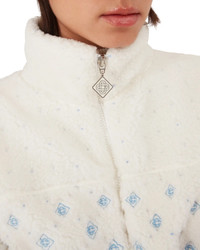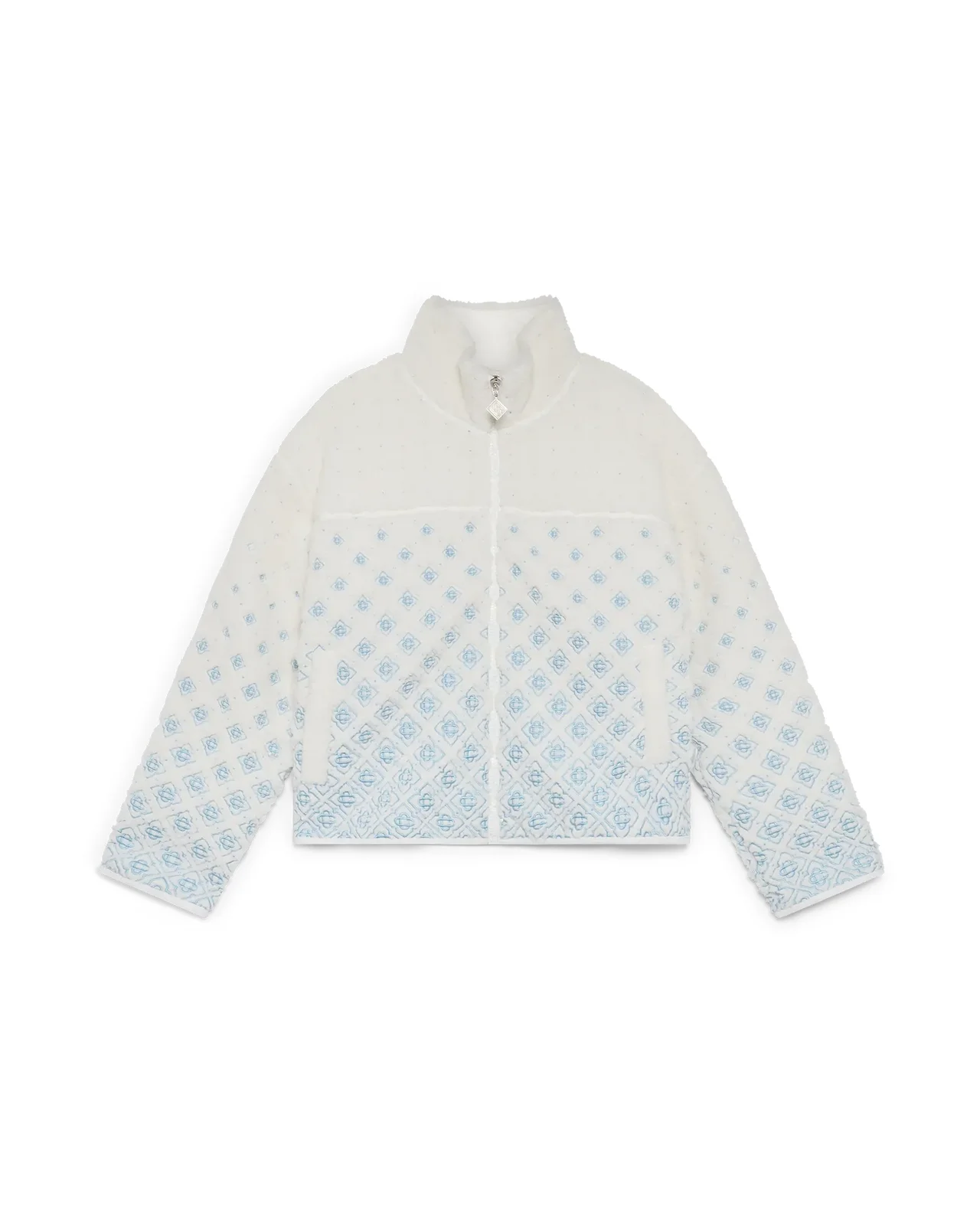 The embroidered gradient monogram cropped fleece jacket is a refined outerwear design crafted from technical fleece fabric in white, inspired by plush textures of Japan's legendary powder snow. Drawing from inviting comfort of traditional countryside life where steaming hot springs offer respite from winter's cold and soft snowfall muffles the world. This style features the house's signature monogram artwork, complete with front zip closure and silver-hardware toggle. - Technical embroidered fleece fabric - Main: 40% acrylic, 32% wool, 28% polyester - Lining: 100% viscose - Colour: white - Specialised dry clean only - Made in Portugal - Relaxed fit - The model is 179cm/5'10 and is wearing a size S - Exclusive to casablancaparis.com, Paris Flagship store and selected retailers