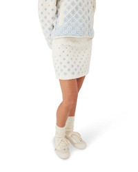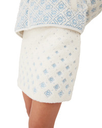 The embroidered gradient monogram fleece mini skirt is a refined apres-sport design crafted from technical fleece fabric in white, inspired by graceful silhouettes of Japan's winter countryside. Drawing from elegant simplicity of village life where form meets function in timeless design and snow-covered landscapes inspire minimalist beauty. This style features the house's signature monogram artwork, complete with side zip closure and silver-hardware toggle. - Technical embroidered fleece fabric - Main: 40% acrylic, 32% wool, 28% polyester - Lining: 100% viscose - Colour: white - Specialised dry clean only - Made in Portugal - Relaxed fit - The model is 179cm/5'10 and is wearing a size S - Exclusive to casablancaparis.com, Paris Flagship store and selected retailers