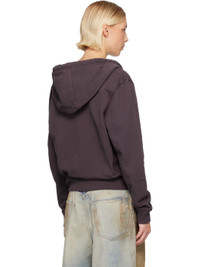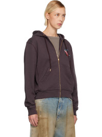 Organic cotton French terry hoodie. · Drawstring at hood · Zip closure · Embroidered logo at chest · Patch pockets at waist · Rib-knit hem, side panels, and cuffs · Gold-tone hardware Supplier color: Aubergine Body: 100% organic cotton. Trim 1: 95% cotton, 5% elastane. Trim 2: 100% viscose. Made in Portugal 252195F097002