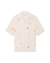 The embroidered motif shirt is a short-sleeve design crafted from an embroidered fabric featuring embroidered artwork representing the house's symbology with nature, tennis and architecture. Completed with button closure, interlocking CC logo corozo buttons, and a Cuban collar. - Embroidered crepe de chine fabric - Main: 100% polyester - Embroidery: 100% polyester - Colour: light pink - Specialised dry clean only - Made in Portugal - Fits true to size, take your regular size - The model is 187cm/6'1 and is wearing a size M