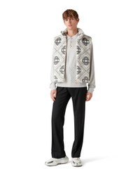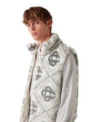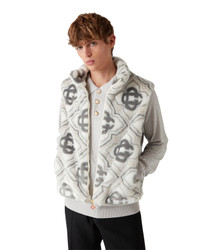 The faux fur monogram gilet is a sleeveless luxurious, soft textured design crafted from jacquard faux fur fabric featuring the house's diamond monogram logo. Completed with front zip closure, vertical welt side pockets, a lining, and a band collar. - Jacquard faux fur fabric - Main: 55% modacrylic 45% acetate - Lining: 100% viscose - Lamb nappa contrast trim - Grey Diamond monogram print - Specialised dry clean only - Made in Lithuania - Fits true to size, take your regular size -