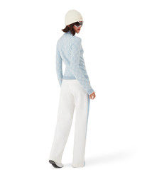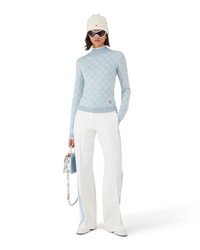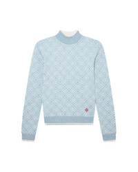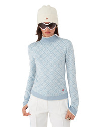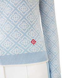 The ski monogram high neck top is a refined apres-sport design crafted from merino wool fabric, featuring the house's distinctive blue and white monogram motif inspired by traditional Japanese winter patterns. Drawing from intricate beauty of frost crystals on temple windows and rhythmic geometry of snow-covered rural fencing. - Merino wool fabric - Main: 53% merino wool, 39% viscose, 8% polyester - Colour: blue/white monogram - Specialised dry clean only - Made in China - Fit: Slim fit - The model is 179cm/5'10 and is wearing a size S - Exclusive to casablancaparis.com, Paris Flagship store and selected retailers