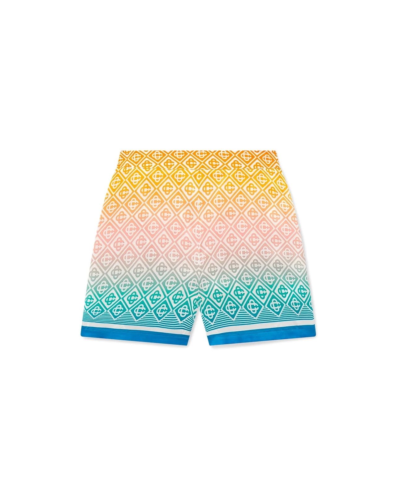 The Gradient Monogram silk tailored shorts are an all-over printed design featuring the house's signature interlocking CC monogram print on this season's gradient background. The colour palette for this collection is light and idealistic, emphasising ethereal themes core to our brand. Crafted from a monogram silk twill fabric and sits high on the waist. Finished with a waistband, side zip closure, a back pocket and striped hem detail. Printed silk satin fabric 100% silk Gradient Monogram print multicolour Specialised dry clean only Made in Italy Fits true to size, take your regular size The model is 177cm/5’10 and is wearing a size S