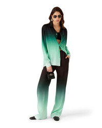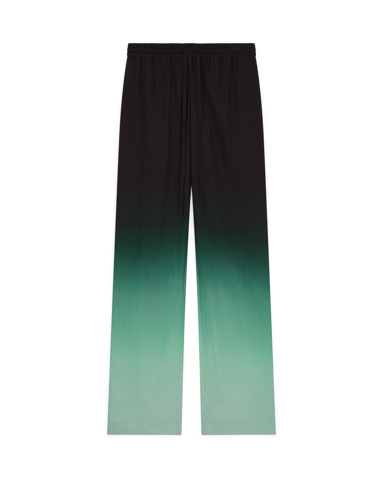 The Gradient Ping Pong jacquard trousers are an all-over printed design - featuring a classic monogram that was developed for our first Japanese collection with ping pong balls in motion going through a diagonal movement, as a repeat - crafted from a gradient silk twill fabric. Completed with an elasticised waistband, in-seam pockets, a back patch pocket, and drawstring fastening. - Gradient silk twill fabric - 100% silk - Colour: gradient green/black - Specialised dry clean only - Made in Italy - Relaxed fit - The model is 177cm/5'9.5 and is wearing a size S