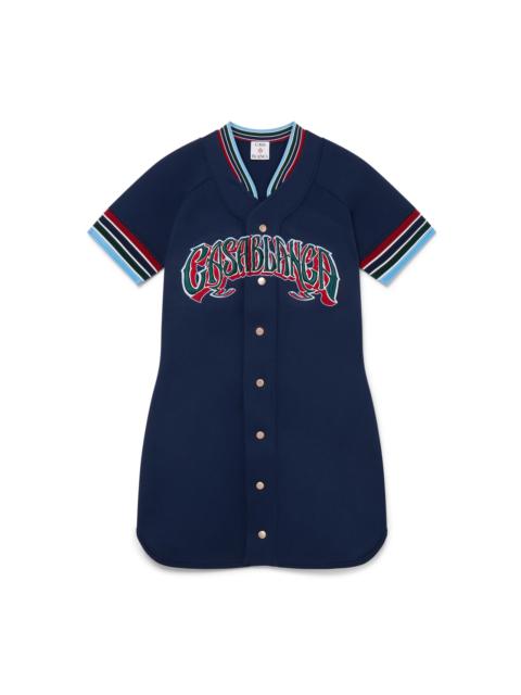 The gradient rib dress is a printed sleeveless design featuring the house's seasonal vibrant gradient print of deep inky blues transitioning through shades of pink to vibrant orange, representing the summer’s shifting sky, sinking into the ocean’s horizon, alluding to nature’s ever-changing canvas. Completed with button closure, a scoop neckline, narrow shoulder straps, and signature gold rim pearl buttons. - Gradient printed fabric - 69% cotton 31% polyamide - Gradient multicolour - Specialised dry clean only - The model is 179cm/5'10.5 and is wearing a size S - Exclusive to casablancaparis.com and selected retailers