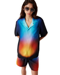 The Gradient silk shirt is a printed design featuring the season's gradient colours crafted from silk fabric. Completed with a Cuban collar, a breast pocket, hidden button closure, and interlocking CC logo corozo buttons. - Gradient silk fabric - 100% silk - Gradient print multicolour - Specialised dry clean only - Made in Italy - The model is 185cm/6'1 and is wearing a size M