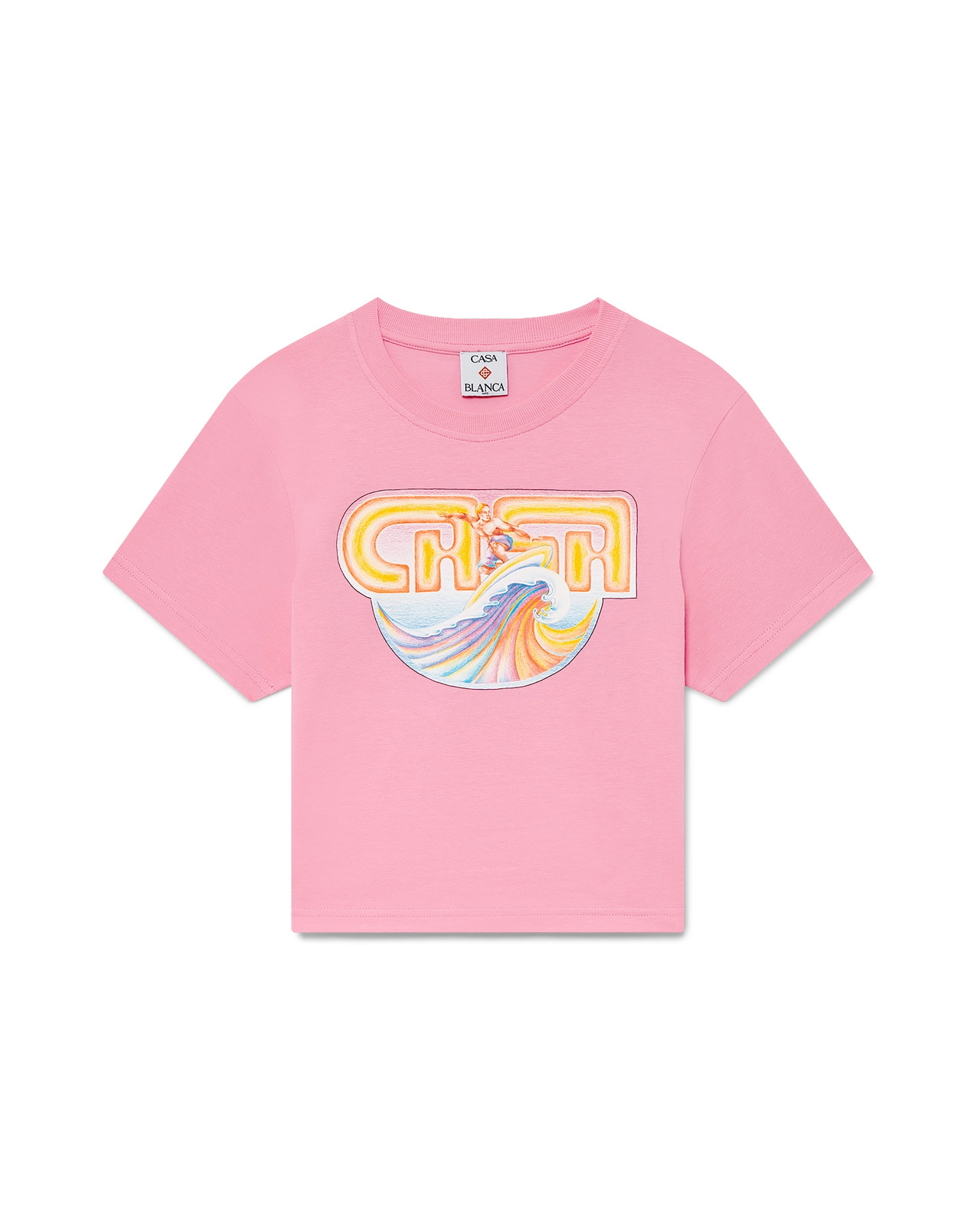 The Casa Surf cropped t-shirt is a short-sleeve printed design crafted from pima cotton fabric and features signature artwork inspired by vintage sun-faded surfboards from the '70s. Completed with a classic crew neck. Designed to fit above the navel. - Cotton fabric - Main: 95% pima cotton 5% elastane - Contrast: 100% cotton - Colour: pink - Delicate machine wash - Made in Portugal - Fits true to size, take your regular size - The model is 177cm/5'9.5 and is wearing a size S